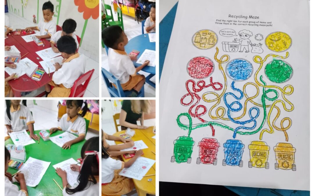 Later in the month, the school engaged in the Pancasila Student Profile Strengthening Project (P5) under the Merdeka Curriculum, specifically the theme “I Love the Earth.” Children learned about environmental conservation by watching educational videos on waste sorting before participating in a hands-on project where they transformed used bottles and pipettes into pencil cases. A special highlight of the month was the celebration of Pengrupukan and Ngarap Ogoh-ogoh in Bali on the eve of Nyepi Day, where a representative student from each class participated in the cultural event.